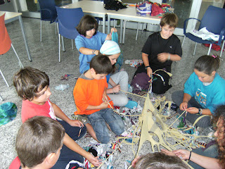 movimiento en el espacio con elementos. Talleres plásticos con técnicas de