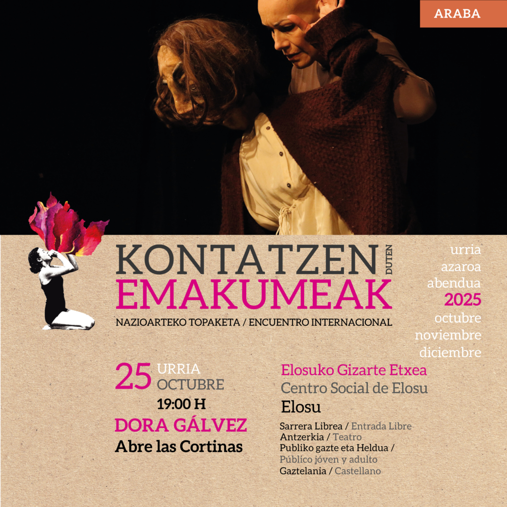 «Educadora en Igualdad y Violencia de Género. Asociación Contra la Violencia Estética hacia las mujeres. Actriz. Escritora. Dora Gálvez nació en Écija, un caluroso pueblo de Sevilla, afincada en Vitoria-Gasteiz desde hace muchos años. Es actriz social y educadora en Igualdad de Género. Desde siempre ha tenido inquietud por conocer la historia de la mujer en este mundo patriarcal.
