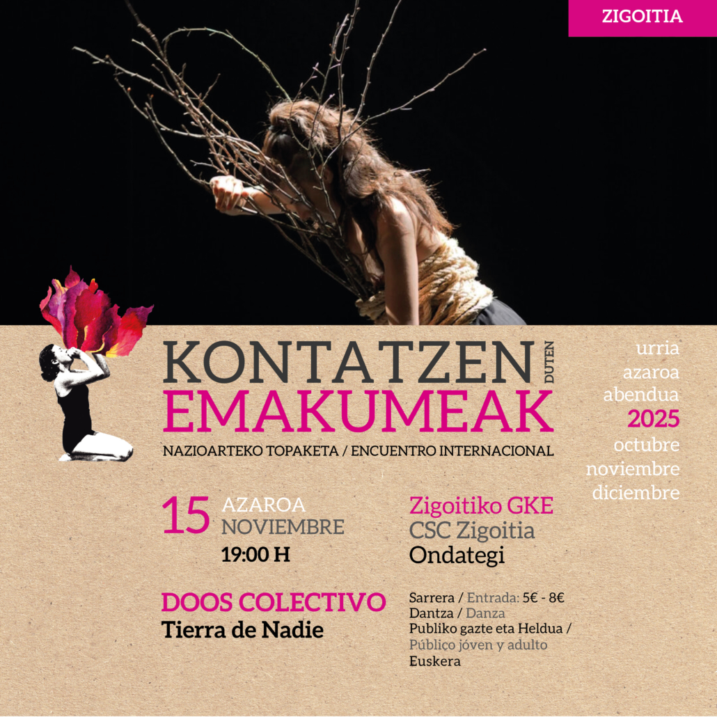 Mis trabajos siempre parten del cuerpo con materiales como: manipulación, acciones cotidianas, gesto, riesgo, cuerpos feos… utilizo la improvisación y el texto tanto en escena como herramienta para coreografiar. Se han mostrado tanto a nivel nacional como internacional (Euskadi, Navarra, Cataluña, Cuenca, Francia, Inglaterra, Brasil Egipto, EEUU…). Actualmente gestiono el Espacio Punto de Fuga y formo parte junto a Jemima Cano de DOOS Colectivo, fundado por ambas en 2011.»