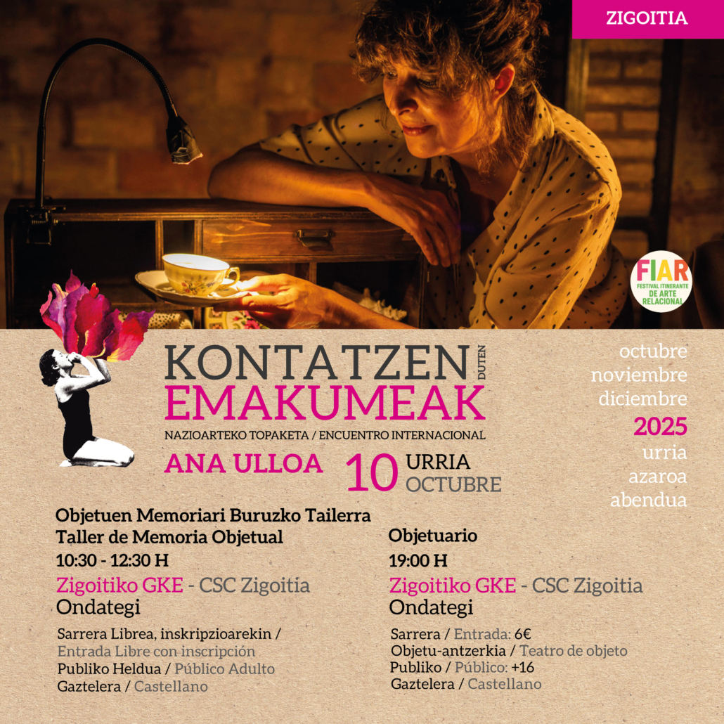 «Un taller donde los objetos cotidianos se convierten en puentes hacia la memoria colectiva. Los participantes explorarán historias personales vinculadas a objetos significativos, compartiéndolas en un ejercicio intergeneracional que combina narración oral, escritura y performance.