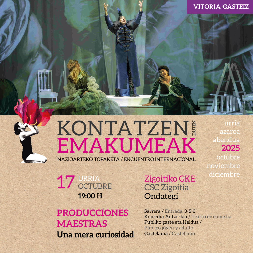 «Una mera curiosidad es un viaje a la esencia humana de la mano de una mujer única: Artemisia Gentileschi. La obra, una comedia que aborda temas serios, sigue a esta pintora barroca italiana cuando decide salirse de su marco para contarnos algo. A través de un relato divertido y emocionante, exploramos su vida y obra, mientras ella reflexiona sobre el arte, la injusticia y su lugar en la historia. La obra mezcla teatro y pintura, creando una simbiosis entre imagen y voz, y sirve como alegato sobre la importancia del arte y la belleza en un mundo cada vez más gris.»